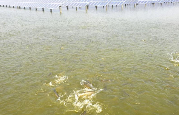 “渔光互补”光伏电站,是指在河网密集的地区架设光伏组件,形成“上可发电、下可养鱼”的发电模式。水下养殖和水上发电作业同时进行,实现了渔业增产和节能减排两不误。